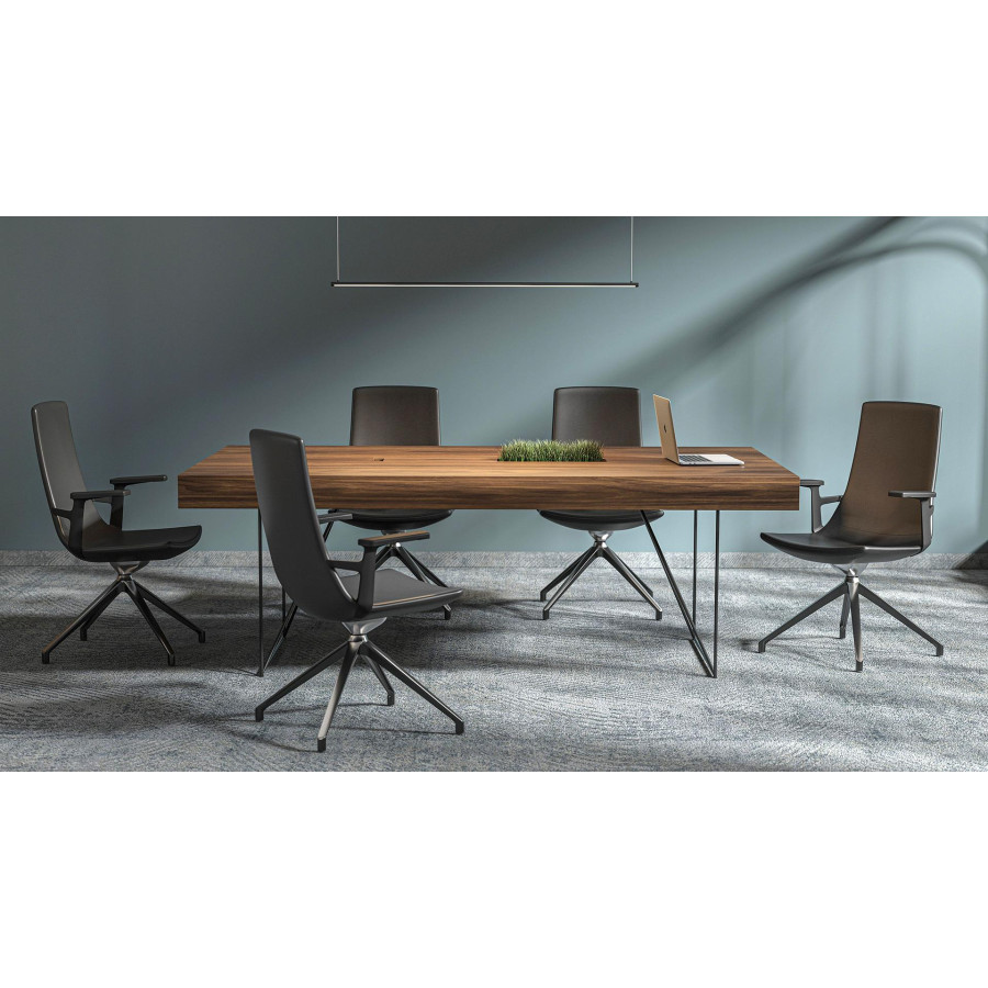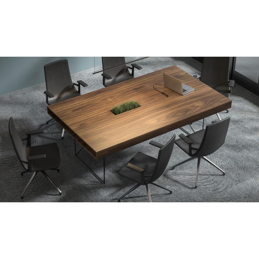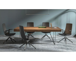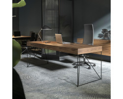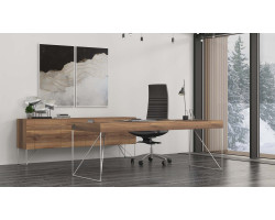 Массивная столешница стола Air executive, покрытая натуральным шпоном, будто повисла в воздухе – “отдыхает” на изящных, тонких хромированных ножках, создавая благородный вид. У легкой конструкции ног есть еще один секрет - через тонкие стальные трубки проведены электрические провода и кабели для интернета, поэтому стол для руководителя останется аккуратным не только на фотографиях, но и на рабочем месте клиента.